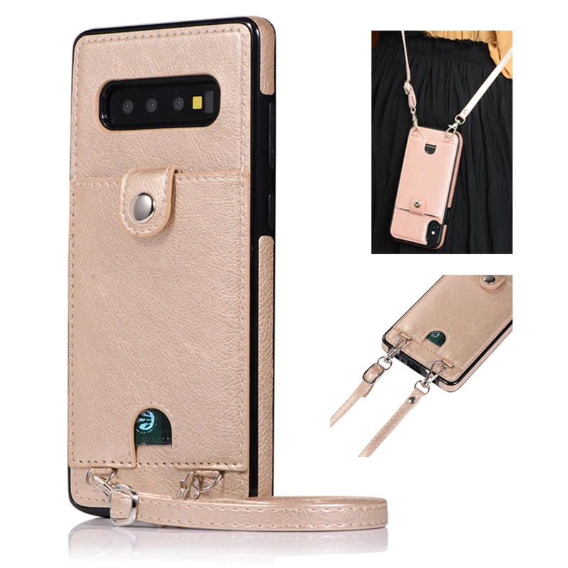 Cheapest Case For Samsung S10E S9 S8 Plus S7 Edge Leather Phone Cover Wallet Card Strap Crossbody Long Chain Best Seller Product only for US $4.42